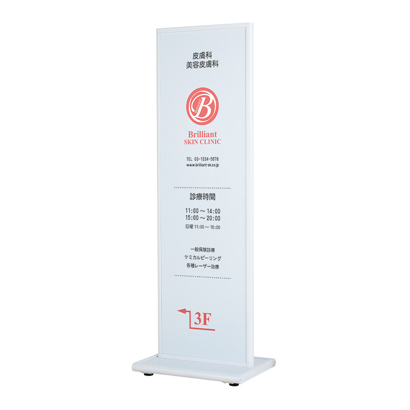 すっきりとしたアルミフレームのT型サイン。
