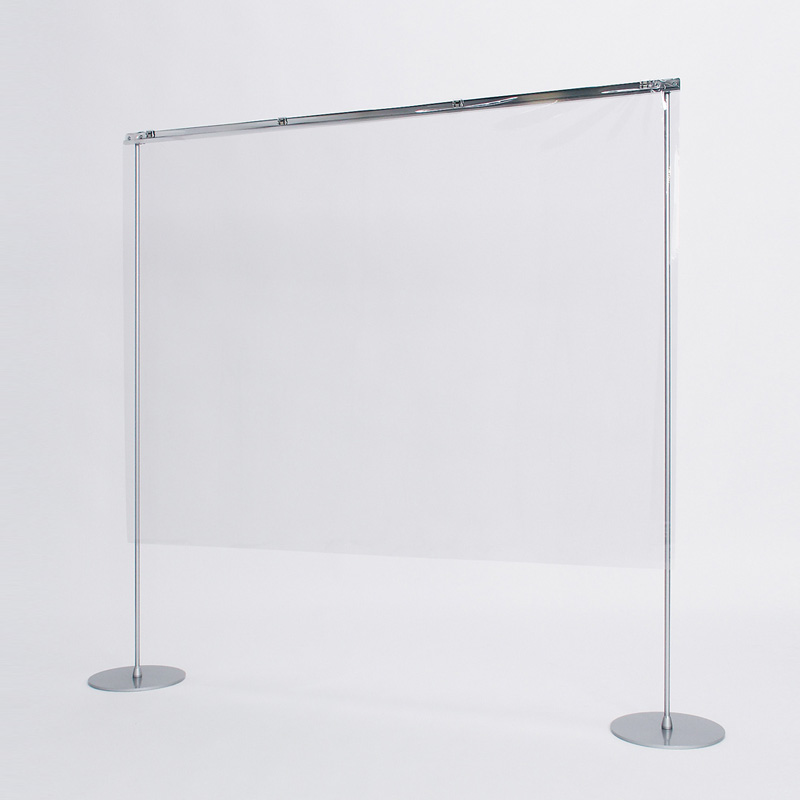 ●横バーにビニールシートをクリップでセットするポールスタンド