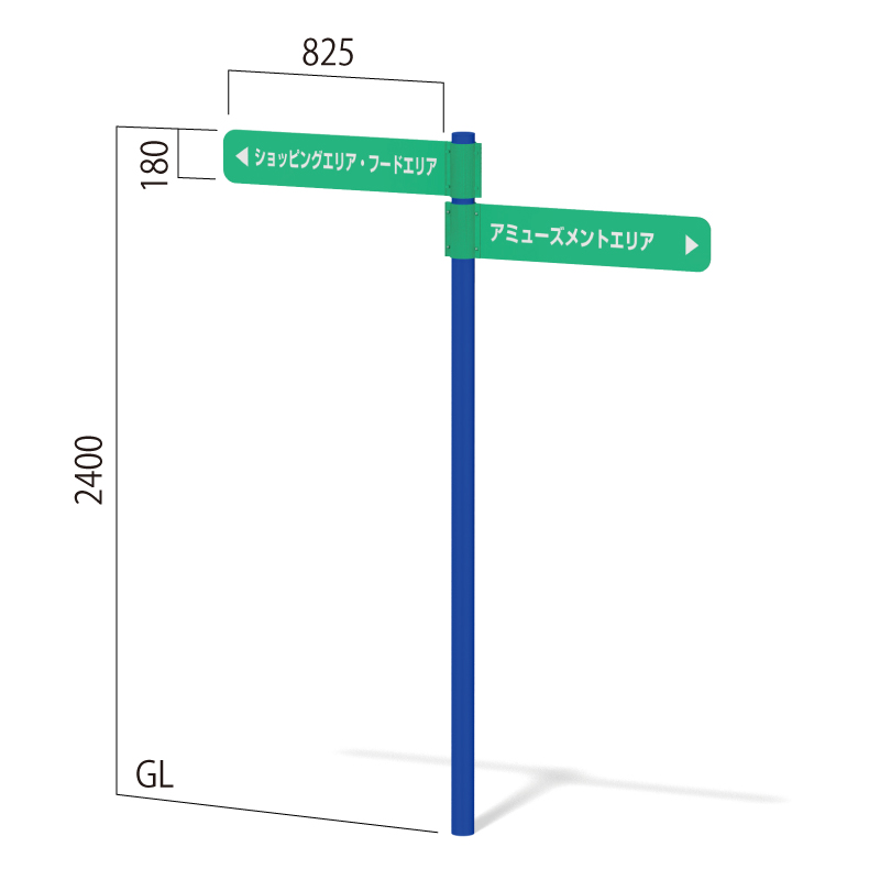 指示する方向が自由自在になる、1本脚型方向サイン。