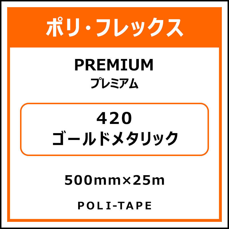 ポリ・フレックスPREMIUM(プレミアム)420ゴールドメタリック500mm×25m (商品コード:015107)