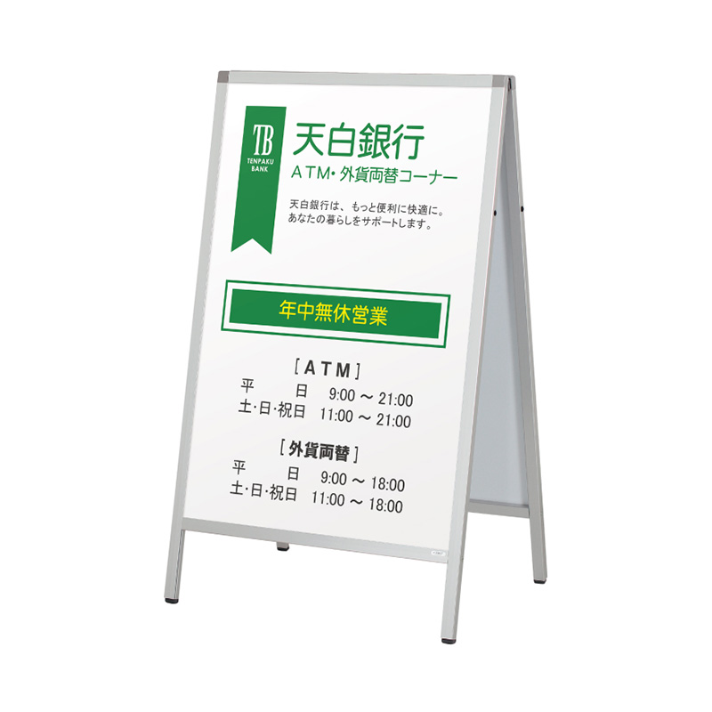 シンプルなアルミフレームのA型サインです。