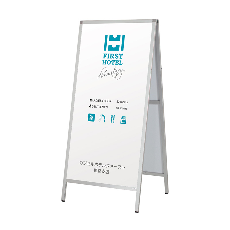 シンプルなアルミフレームのA型サインです。